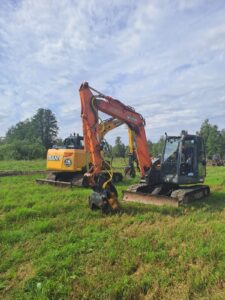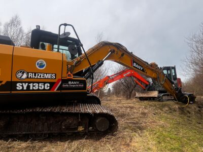 Darbiem izmantojam modernu tehniku: Sany 135 un Hitachi 85 ekskavatorus ar TMK kniebējgalvām, kas nodrošina ātru un precīzu darbu veikšanu pat vissarežģītākajos apstākļos.